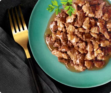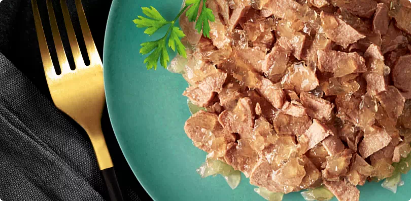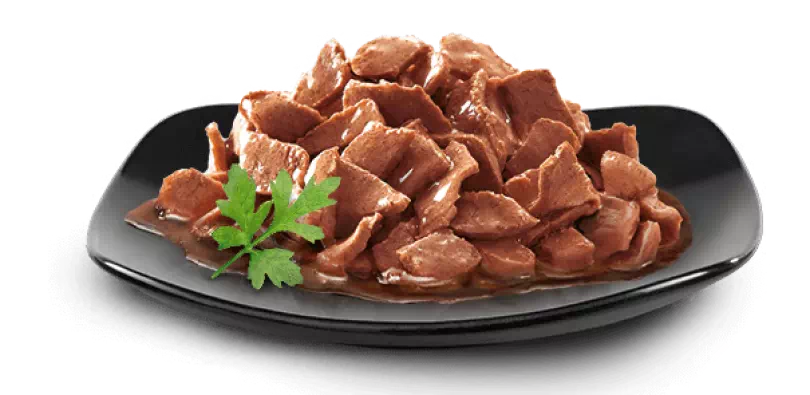 Przepyszne mięsiste płatki w rozpływającej się w galaretce. Doskonałe jedzenie, aby zainspirować Twojego kota do czułości. Dostępne na tackach i w saszetkach 85g.