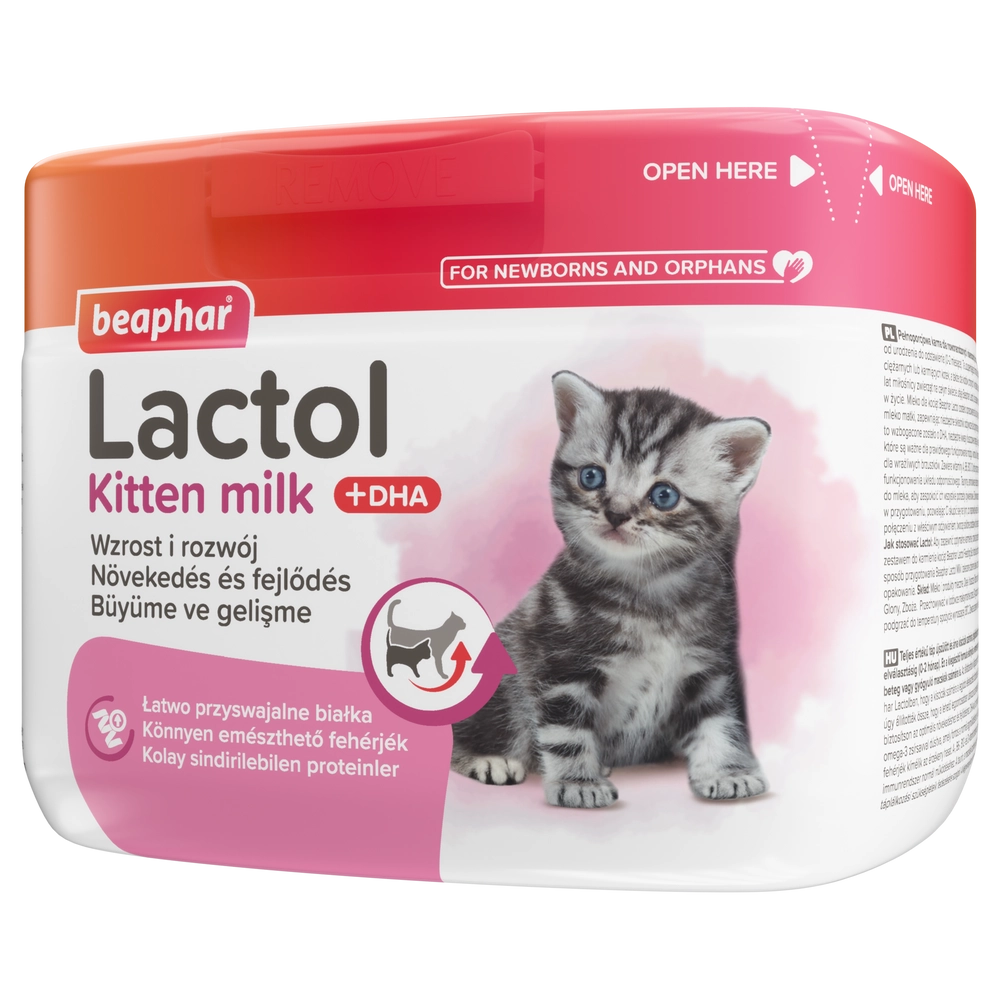 Preparat mlekozastępczy pełnoporcjowy przygotowany z myślą o osieroconych oraz nienajadających się kociętach od momentu urodzenia do 35 dnia życia. Produkt może być również uzupełnieniem diety kotek w czasie ciąży oraz podczas laktacji. Zwykłae mleko krowie nie dostarcza niezbędnych ilości białka i tłuszczu młodym kociętom. Skład Kitty Milk został zmodyfikowany tak, aby zapewnić najlepsze źródło składników odżywczych niezbędnych dla bardzo młodych kociąt. Kitty Milk dostarcza optymalnie zbilansowane ilości tuszczu oraz wszystkie niezbędne witaminy i minerały , dla jak najlepszego rozwoju młodego organizmu. Preparat został wzbogacony o DHA (NKT Omega 3 naturalnie obecny w mleku kotek). Dzięki specjalnemu procesowi suszenia proszku, białko zawarte w Lactol Kitty Milk jest łatwo przyswajalne, co niesie za sobą znaczące korzyści dla kociąt. Beaphar lactol kitty milk zawiera wiele niezbędnych aminokwasów, witamin i pierwiastków śladowych.