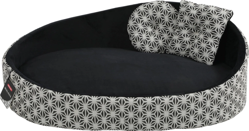 Legowiska stworzone zostały z dwóch materiałów: czarno-białej grubej tkaniny o modnym wzorze (260 g) oraz miękkiego futra