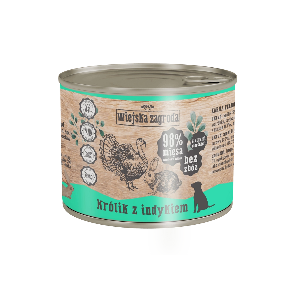 Podstawą posiłku jest zatem duet starannie wybranych mięs w aromatycznym bulionie mięsnym. Połączenie delikatnego i soczystego królika wraz z lekkostrawnym indykiem to świetny wybór dla każdego psa, nawet tego z wrażliwym żołądkiem.