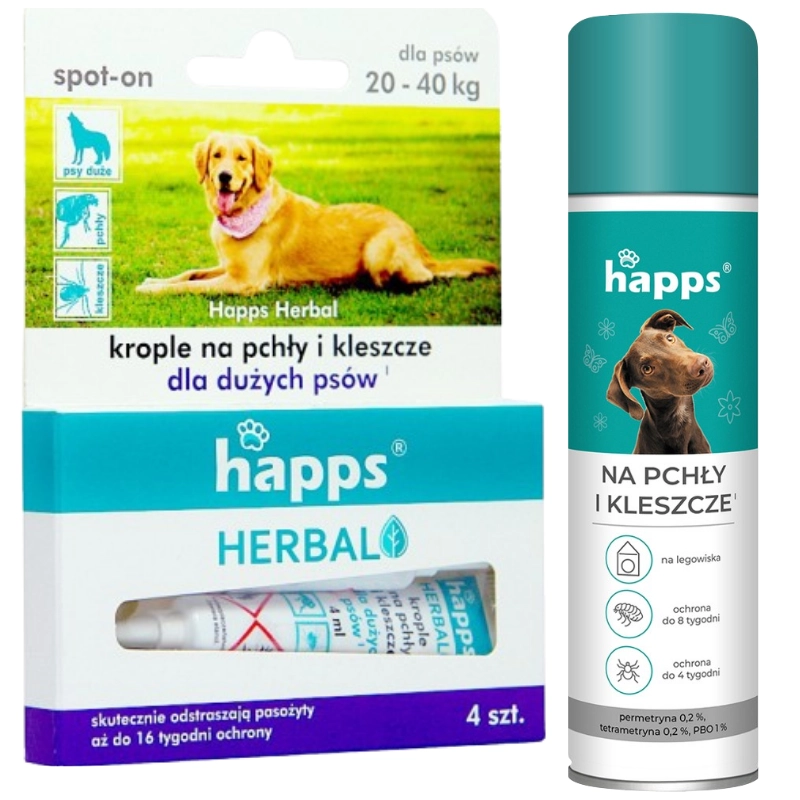 Wygodne i łatwe w użyciu krople Happs Herbal zapewnią Twojemu psu ochronę przez pchłami i kleszczami nawet do 16 tygodni!