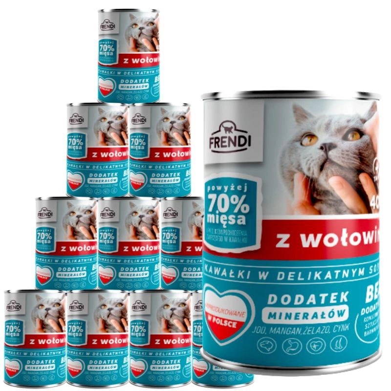 - 10x Frendi kawałki w delikatnym sosie z wołowiną 400g dla kotaCena: 3,85 zł / szt.