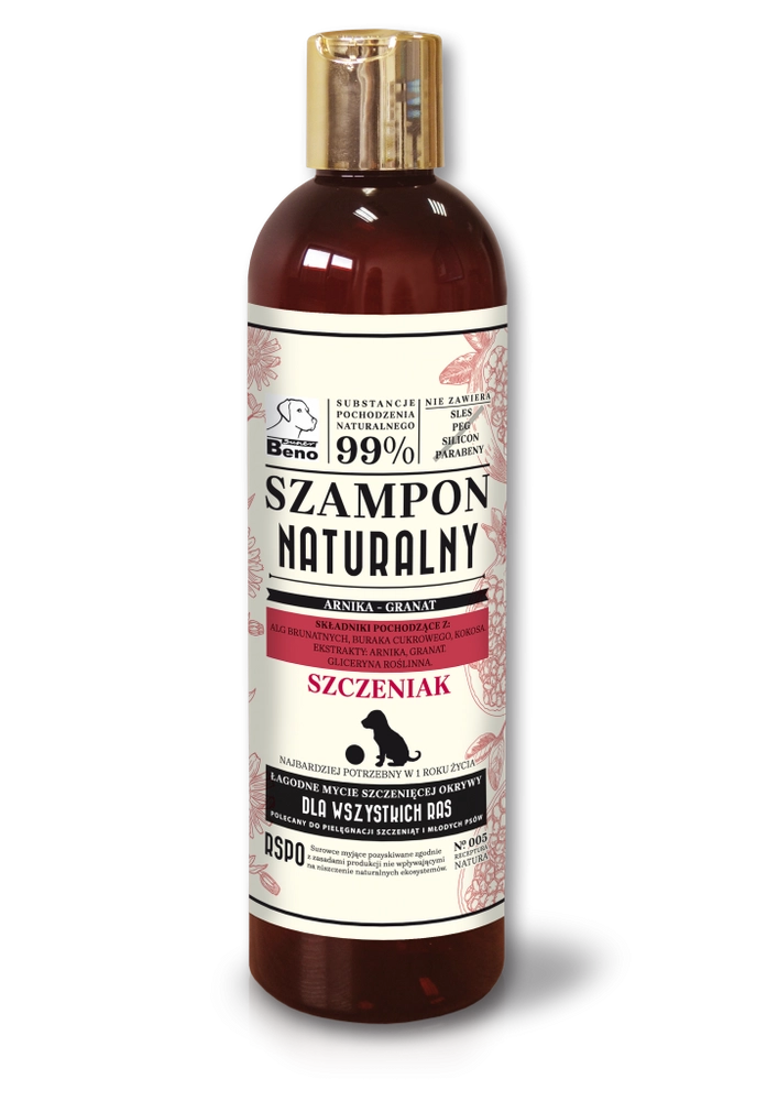 Szczenięta mają o wiele delikatniejszą skórę, a ich sierść ma inną strukturę niż psów dorosłych. Jest to niezależne od tego, czy należą do przedstawicieli ras długo, krótko czy szorstkowłosych. W pierwszych miesiącach ich sierść jest puszysta i miększa niż docelowo. Dopiero z czasem, gdy szczenięcy puch wypada, zastępuje go sierść docelowa. Dlatego szampon Super Beno dla szczeniaków jest wyjątkowo delikatny, bez mocnego zapachu i bez dodatków SSL, parabenów czy silikonów. Uzyskano to dzięki zastosowaniu składników myjących pozyskiwanych z surowców naturalnych, roślinnych. Dodatkowo szampon silnie nawilża.
