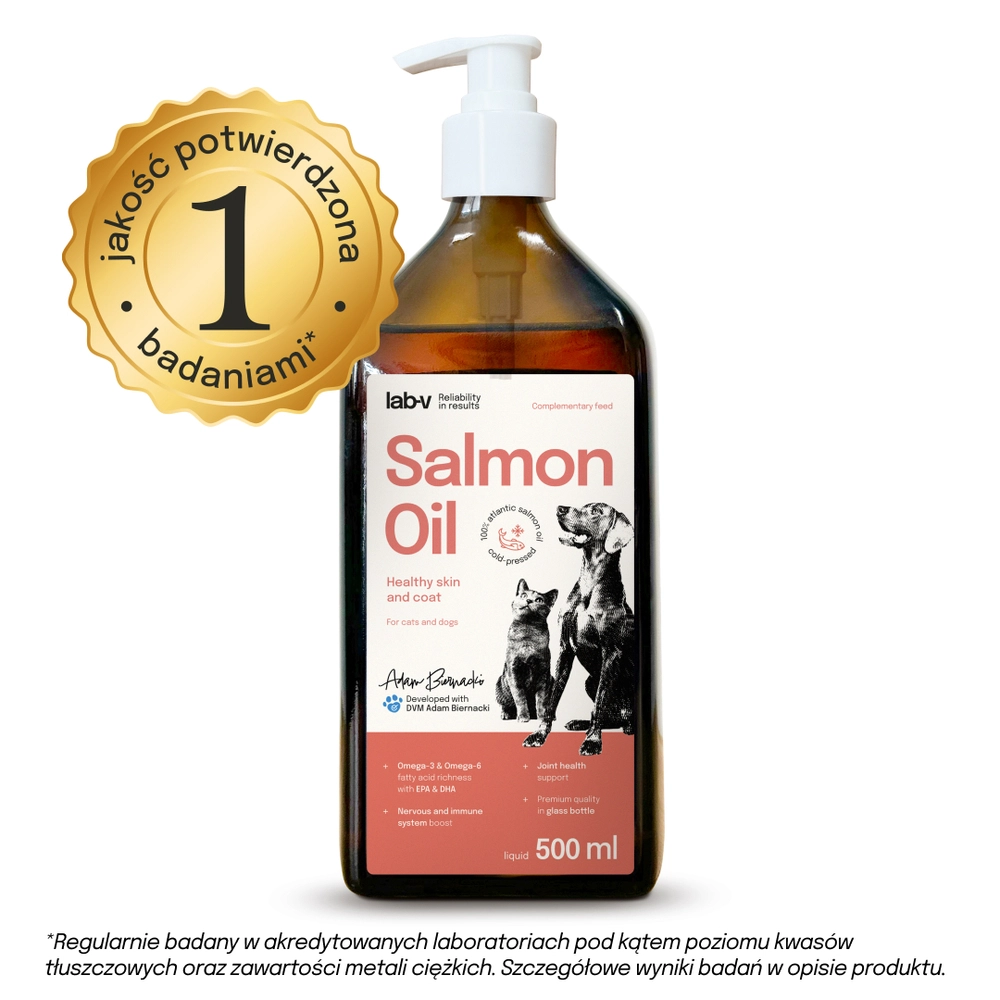 Olej z łososia wspomaga kondycję skóry i sierści, łagodzi alergie, poprawia ruchomość stawów oraz wspiera układ immunologiczny i nerwowy.Czystość i jakość