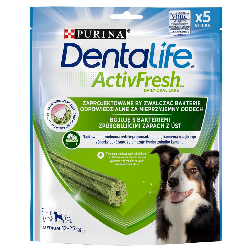 Purina Dentalife ActivFresh z naturalną spiruliną i miodem nie działa powierzchownie, jedynie maskując nieprzyjemny oddech ale jest zaprojektowana by neutralizować bakterie odpowiedzialne za jego powstanie. Kształt, rozmiar i gąbczasta struktura ActivFresh są zaprojektowane wg formuły Dentalife, która w sposób potwierdzony naukowo zmniejsza gromadzenie się kamienia nazębnego.
