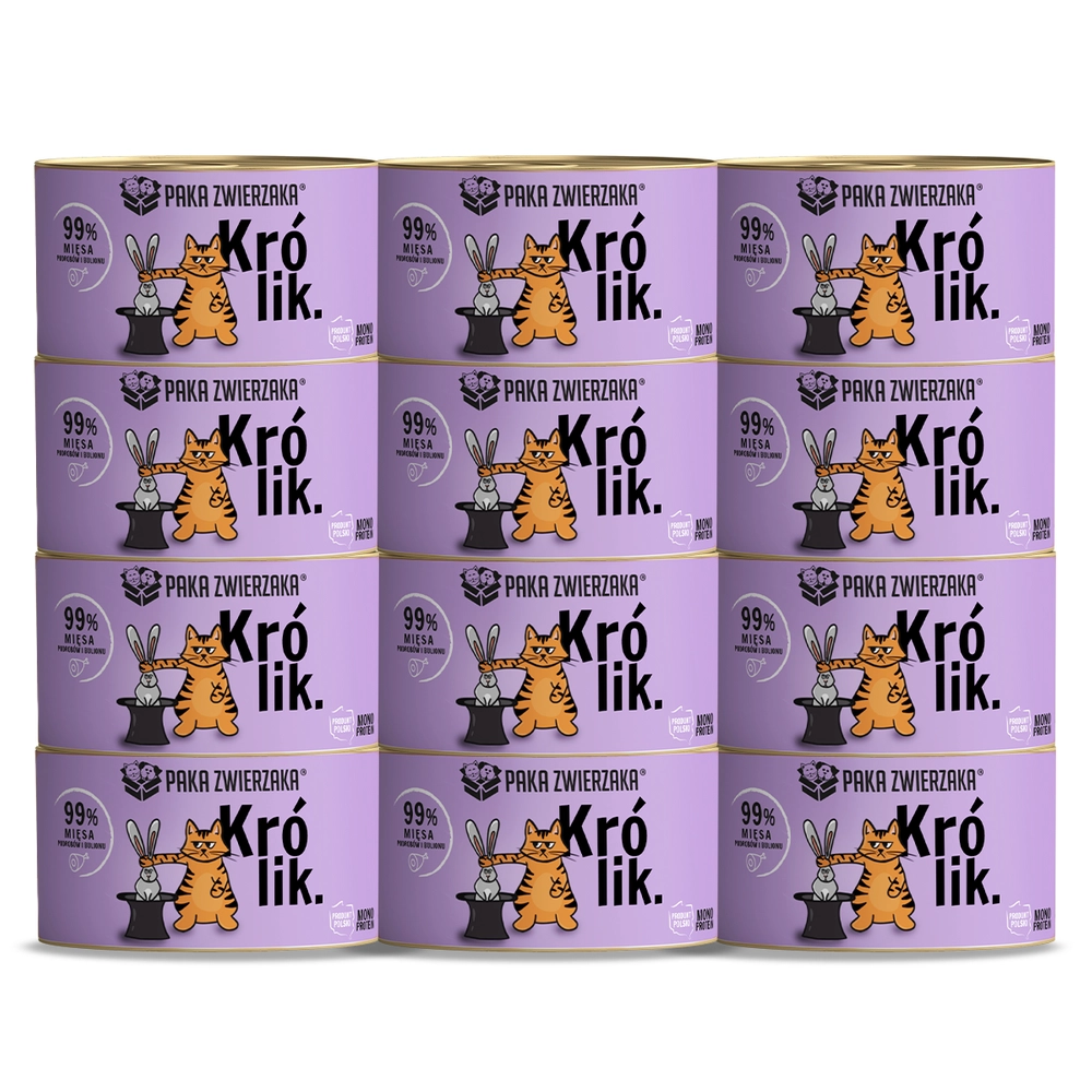 Naturalna karma mokra jest kompletnym i zbilansowanym posiłkiem dla kotów w każdym wieku. Zawiera 99% mięsa, cennych podrobów oraz rosołu z królika. Przygotowana z najwyższej jakości świeżych składników. Bogata w składniki odżywcze i wysoko przyswajalne źródła białka zwierzęcego.