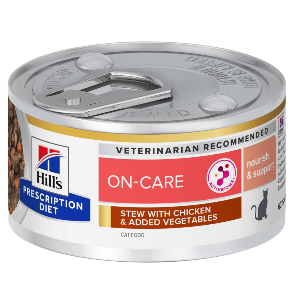 Hill's Prescription Diet ON-Care Stew z kurczakiem i dodatkiem warzyw to kliniczna karma, która zapewnia wsparcie żywieniowe, którego potrzebuje Twój kot. Skonsultuj się z lekarzem weterynarii, aby uzyskać więcej informacji na temat tego, w jaki sposób nasze karmy Prescription Diet mogą poprawić jakość życia Twojego kota.