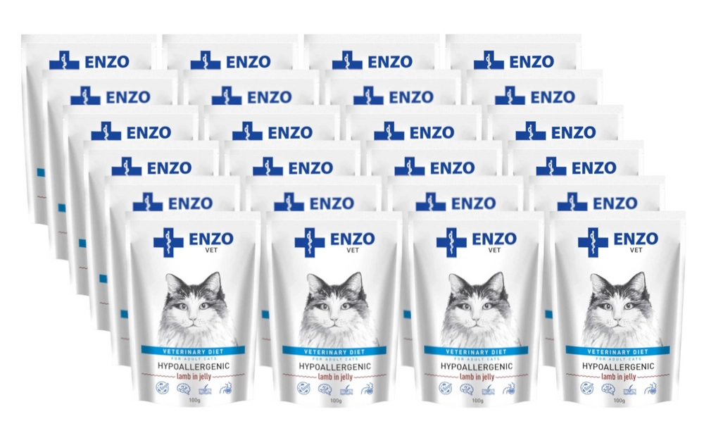 - 24x ENZO VET Hypoallergenic dla kotów z jagnięciną w galaretce 100gCena: 3,99 zł / szt.