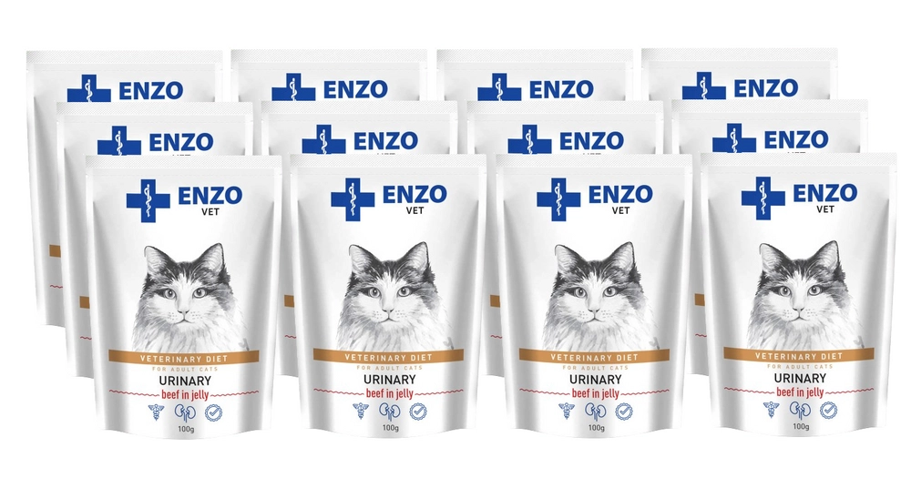 - 12x ENZO VET Urinary z wołowiną w galaretce dla kotów 100gCena: 3,99 zł / szt.