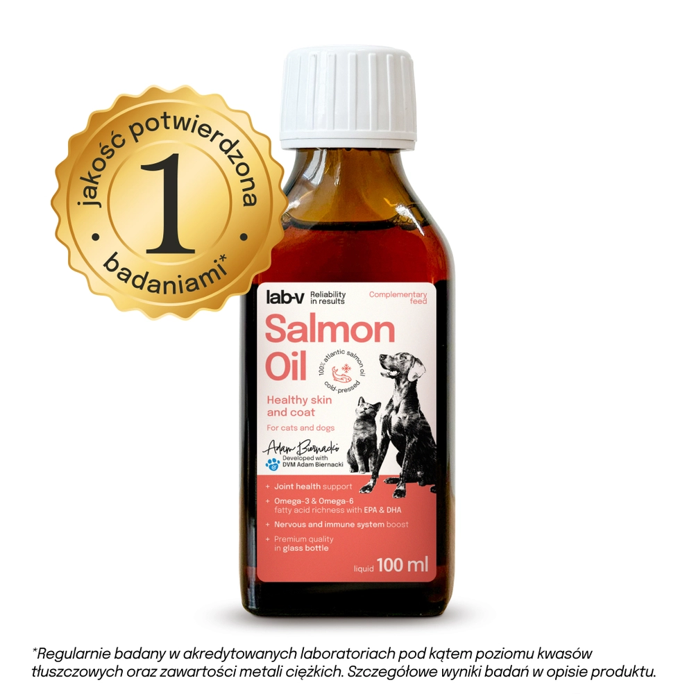 Olej z łososia wspomaga kondycję skóry i sierści, łagodzi alergie, poprawia ruchomość stawów oraz wspiera układ immunologiczny i nerwowy.Czystość i jakość