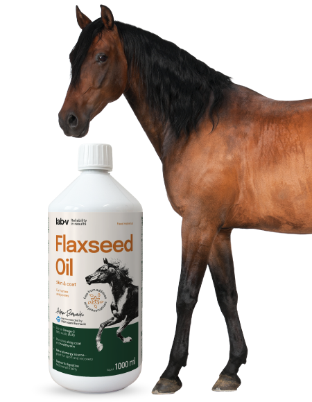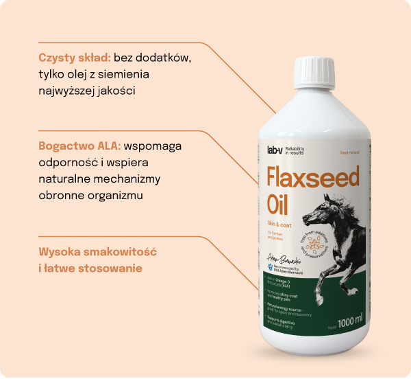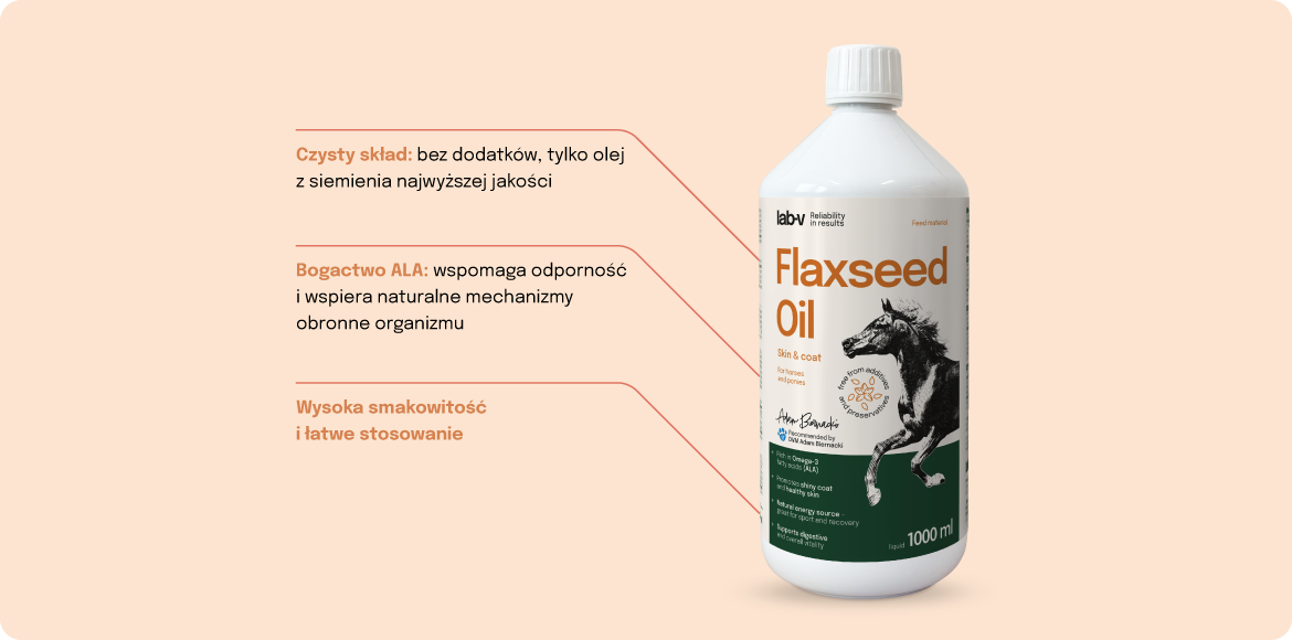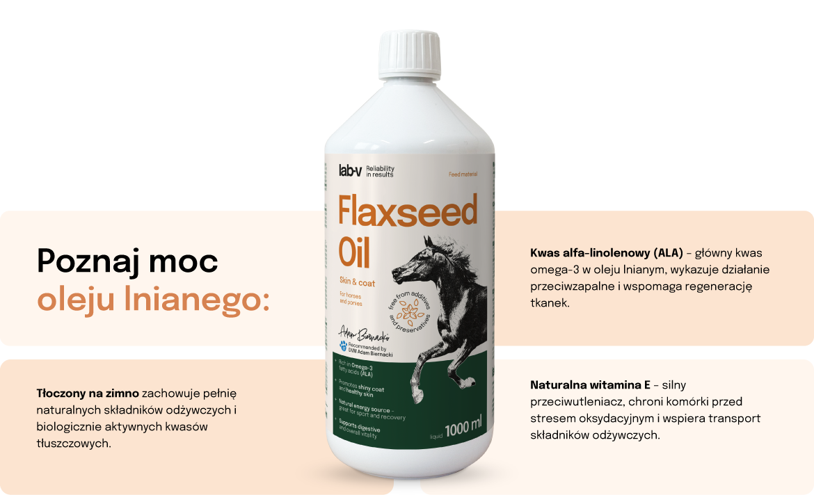 Lab-v Flaxseed Oil to w pełni naturalny, tłoczony na zimno olej lniany dla koni,