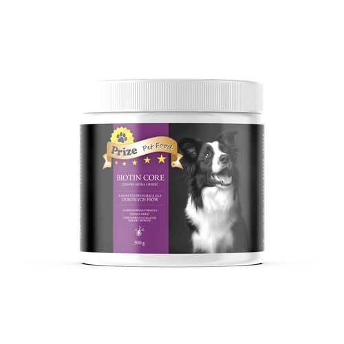 Biotin Core to kompleksowy preparat zawierający aż 10 witamin wspierających regenerację i prawidłowe nawilżenie naskórka, składniki mineralne niezbędne do prawidłowego wzrostu sierści, a także biotynę, kolagen i aminokwasy pozytywnie wpływające na stan skóry, okrywy włosowej i pazurów. Regularne podawanie psu Biotin Core może wzmocnić naturalną barierę skórną, ograniczyć podrażnienia i nadmierne wypadanie sierści oraz złagodzić skórne objawy alergii.