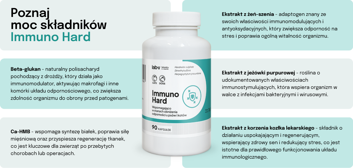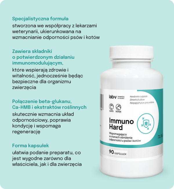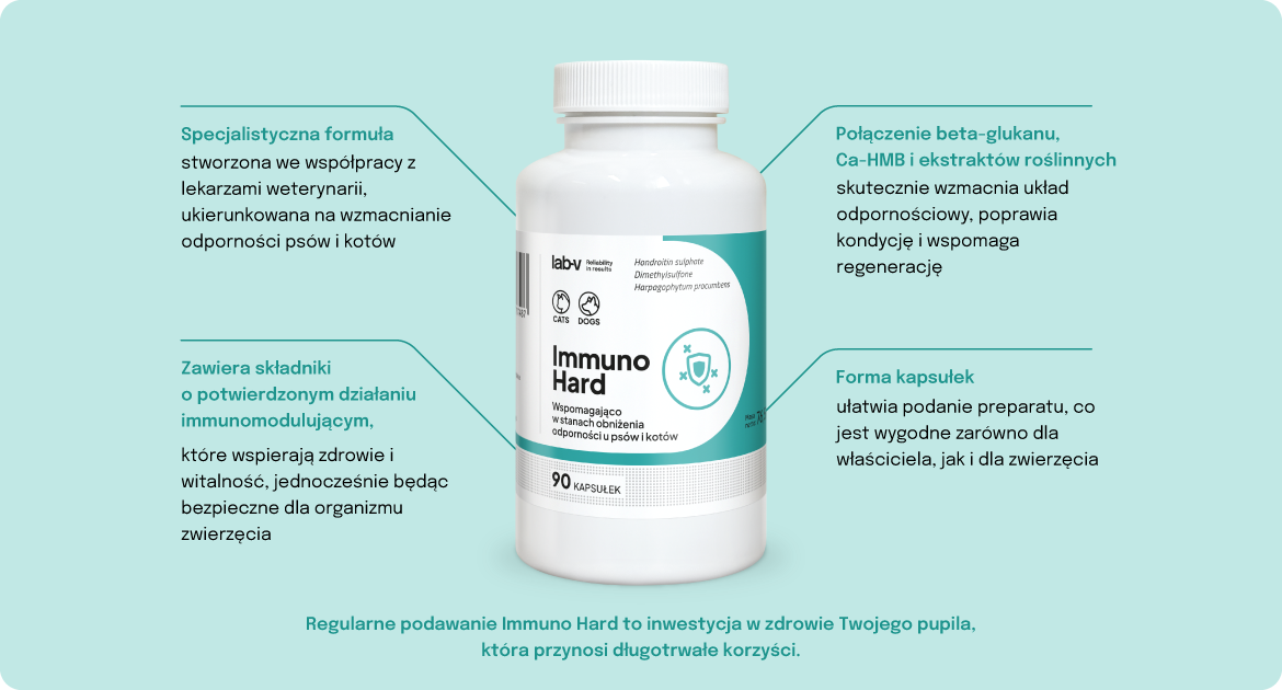 Immuno Hard to zaawansowany preparat w formie kapsułek, stworzony we współpracy z lekarzami weterynarii,