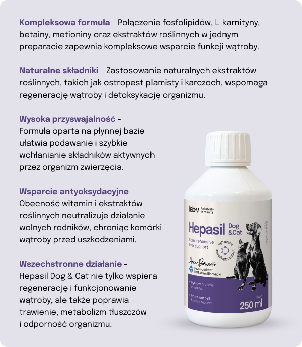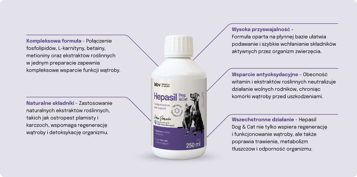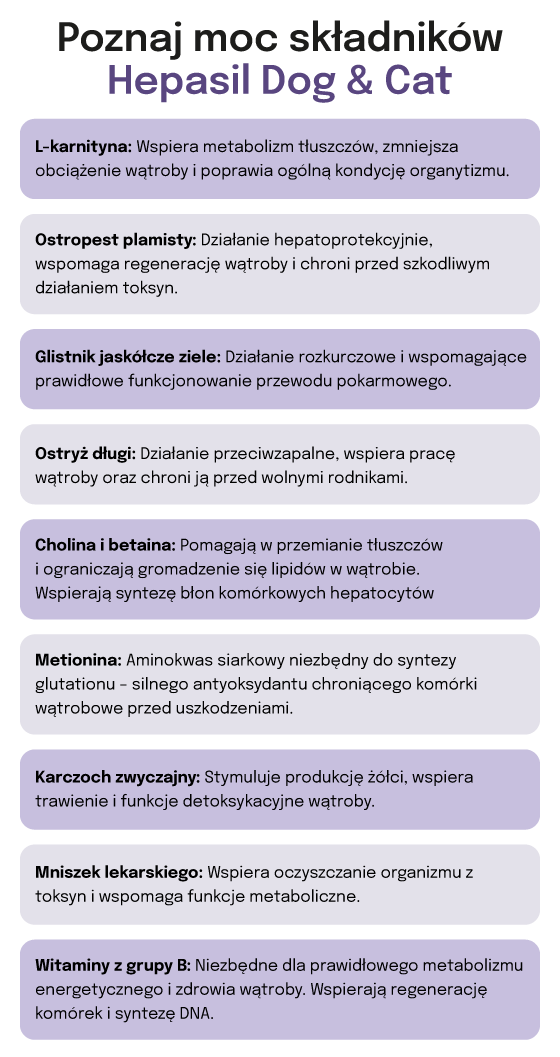 • Wsparcie dla zwierząt po przebytych chorobach wątroby