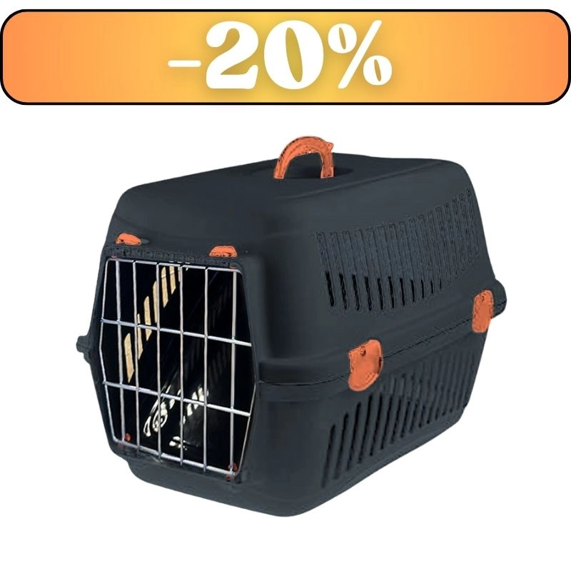 Klatka transportowa dla Twojego zwierzaka z metalowymi drzwiami.