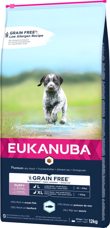 EUKANUBA Grain Free to bezglutenowa karma dla szczeniąt dużych ras.