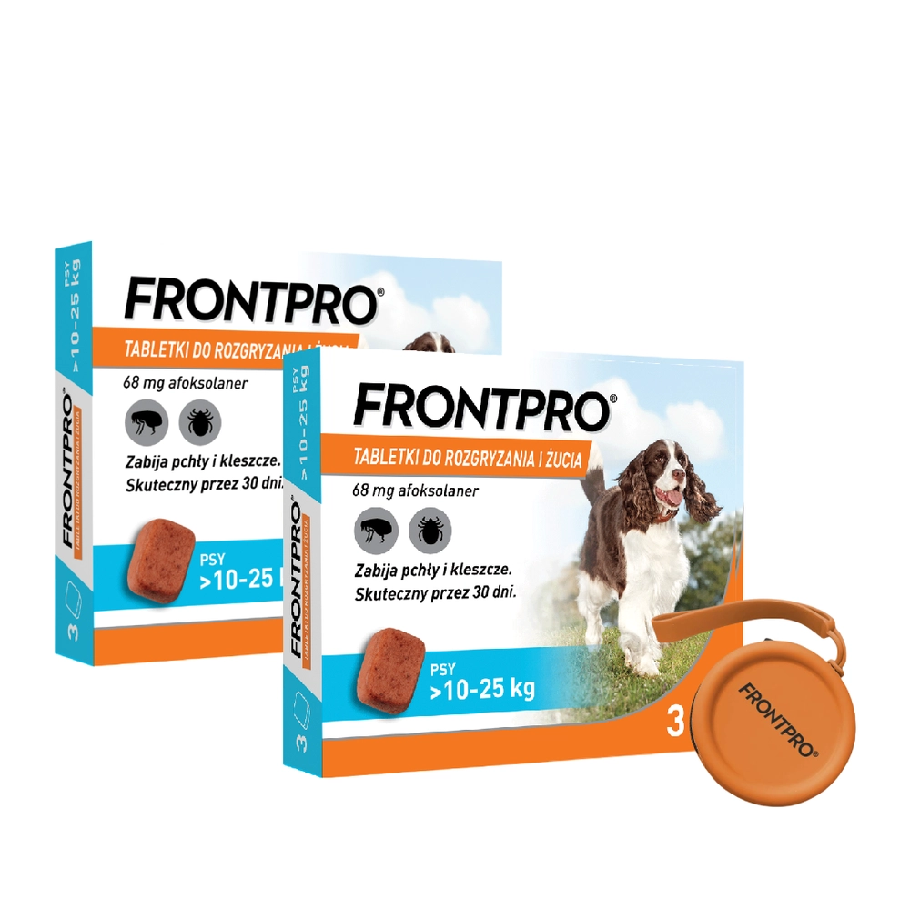 - 2x Frontpro tabletki na pchły i kleszcze L 68mg 10-25kg x 3tablCena: 105,94 zł / szt.