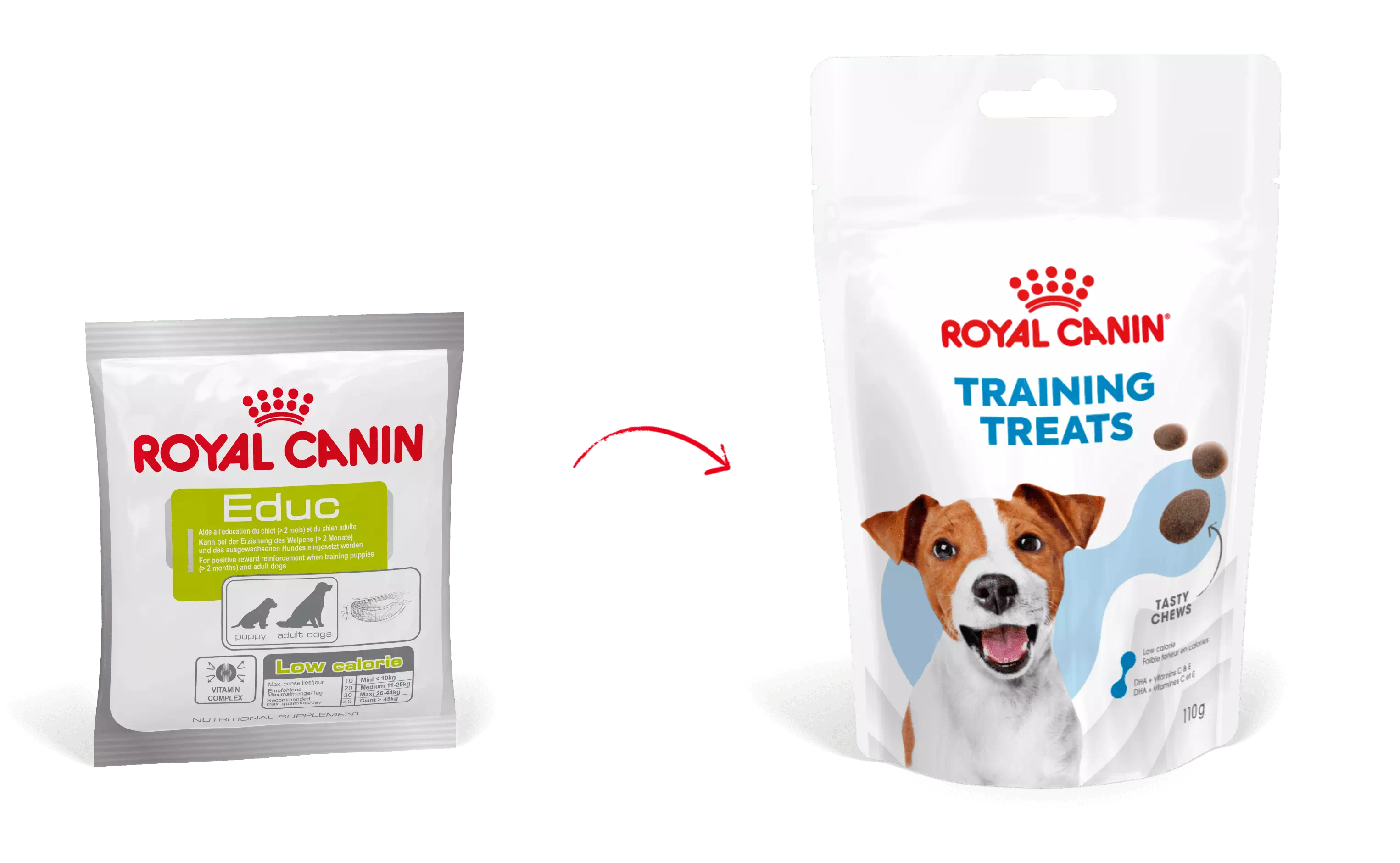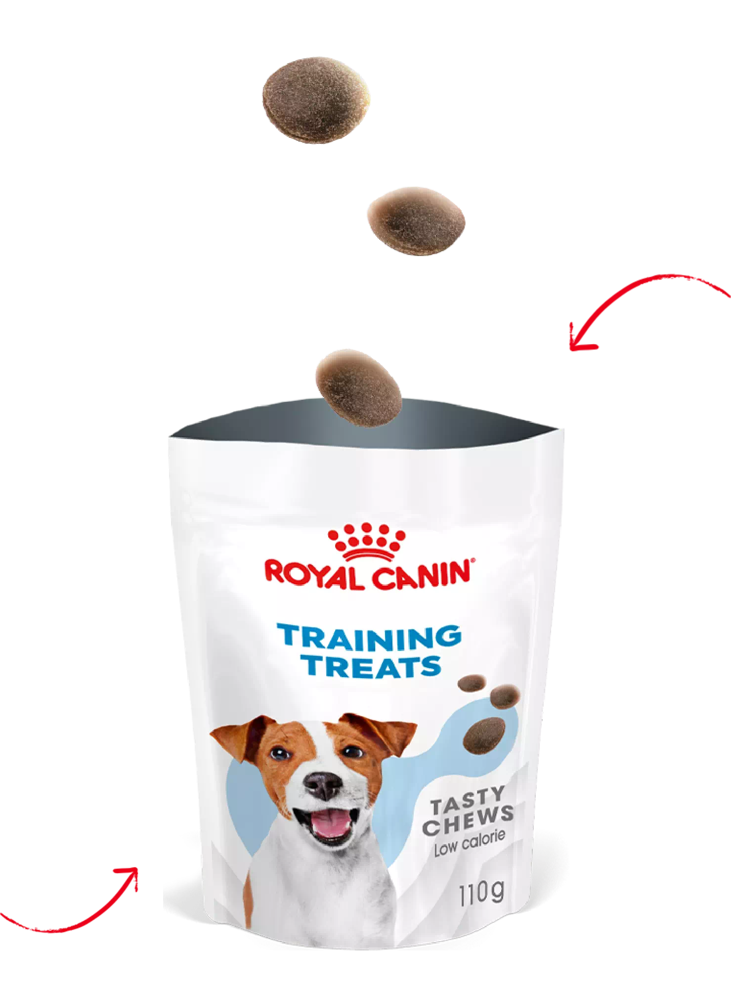 Nauka oparta na nagrodach jest kluczowa dla skutecznego treningu. Właśnie dlatego opracowaliśmy produkt ROYAL CANIN® TRAINING TREATS, doskonałe połączenie smaku i wartości odżywczych, który jest odpowiedni do stosowania jako nagroda u psów w różnym wieku.