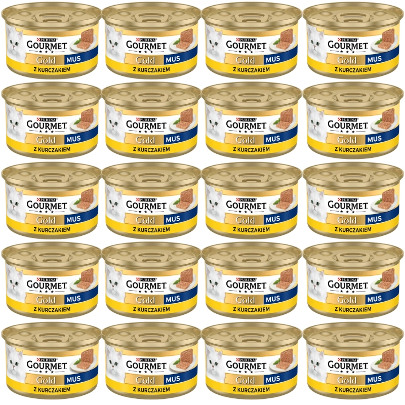Rozkoszuj się wyjątkowym smakiem z GOURMET™ Gold Mus! Nasze delikatne musy z wołowiną, kurczakiem, łososiem lub w innym wyśmienitym smaku zostały starannie przygotowane, aby dostarczyć Twojemu kotu przyjemność z jedzenia. Każda porcja GOURMET™ Gold to nie tylko uczta dla podniebienia, ale także pewność, że Twój kot otrzymuje to, co najlepsze.
