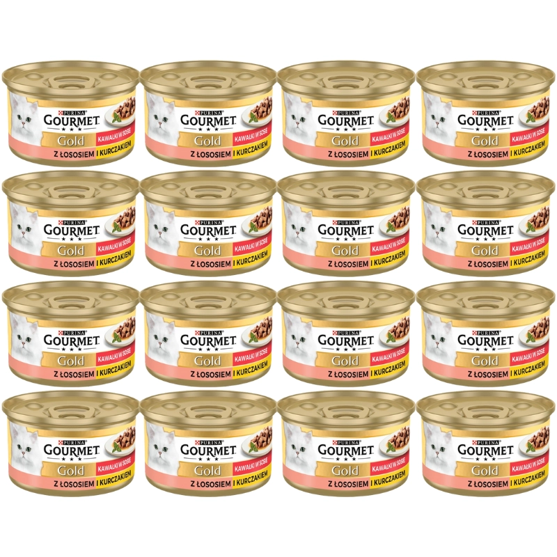 - 48x Purina Gourmet Gold łosoś/ kurczak w sosie 85gCena: 3,49 zł / szt.