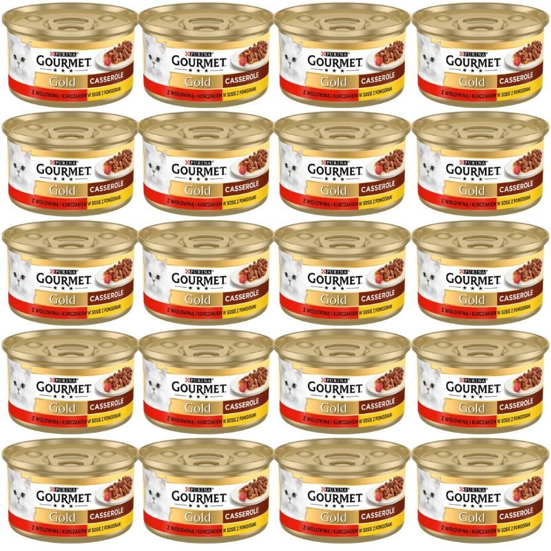 GOURMET™ Gold Casserole to pyszne dania z wołowiną i kurczakiem, kaczką i indykiem, powoli gotowane w wyrafinowanym sosie. Każdy sos został starannie dobrany i tworzy subtelną harmonię tekstury i smaku. Wszystkie przepisy GOURMET™ Gold są przygotowane ze składnikami wysokiej jakości i bez dodatku barwników, bez dodatku sztucznych aromatów i bez dodatku sztucznych konserwantów.