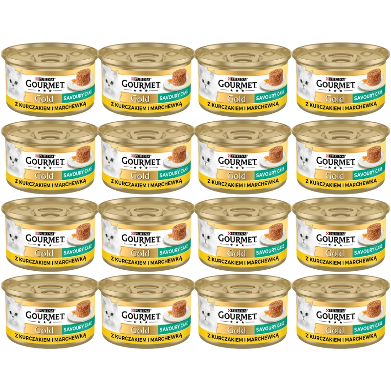 - 48x Purina Gourmet Gold Savoury Cake z kurczakiem i marchewką 85gCena: 3,49 zł / szt.