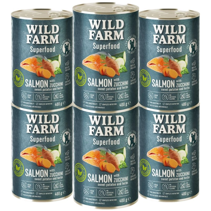 - 6x WILD FARM Superfood Salmon 400g bezzbożowa karma dla psaCena: 7,50 zł / szt.