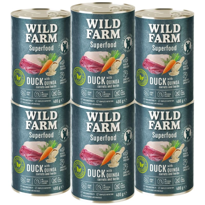 - 6x WILD FARM Superfood Duck 400g bezzbożowa karma dla psaCena: 7,50 zł / szt.