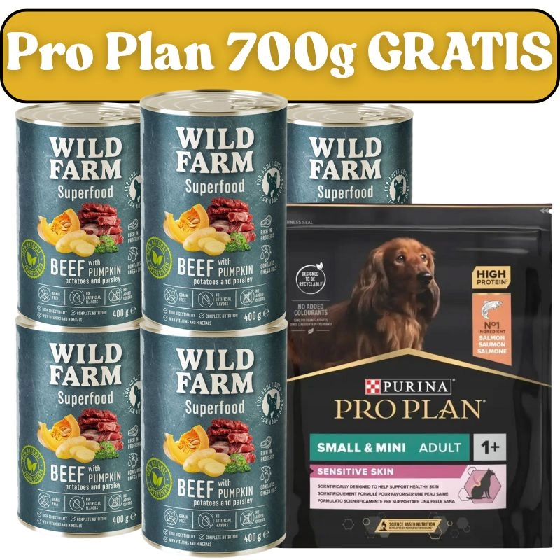 6x WILD FARM Superfood Beef 400g bezzbożowa karma dla psaCena: 7,50 zł / szt.