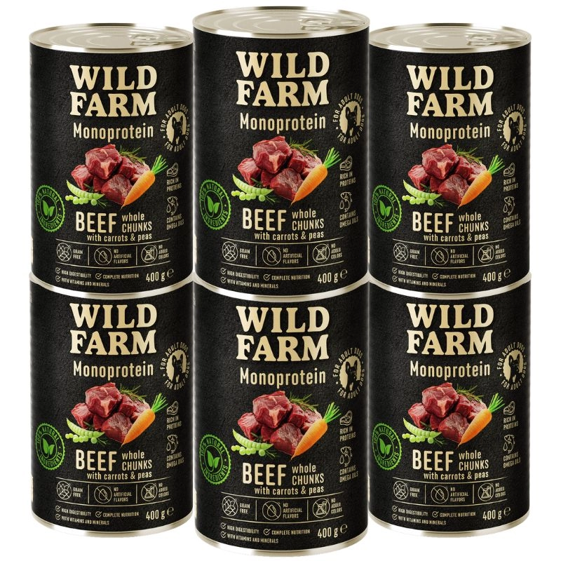 - 6x WILD FARM Monoprotein Beef 400g hipoalergiczna karma dla psaCena: 9,50 zł / szt.