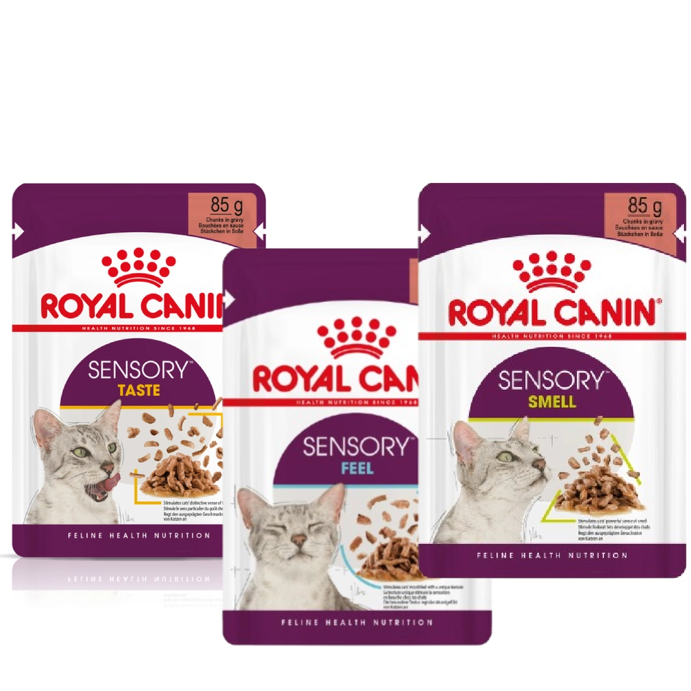 Wrażenia czuciowe są szczególnie istotne dla kotów, które przy wyborze karmy kierują się jej teksturą. Tekstura karmy ROYAL CANIN® Sensory Feel kawałki w sosie jest kremowa i delikatna, a smakowity sos dobrze przylega do kawałków. Karma została specjalnie opracowana w celu intensywnego pobudzania wrażeń czuciowych u kotów