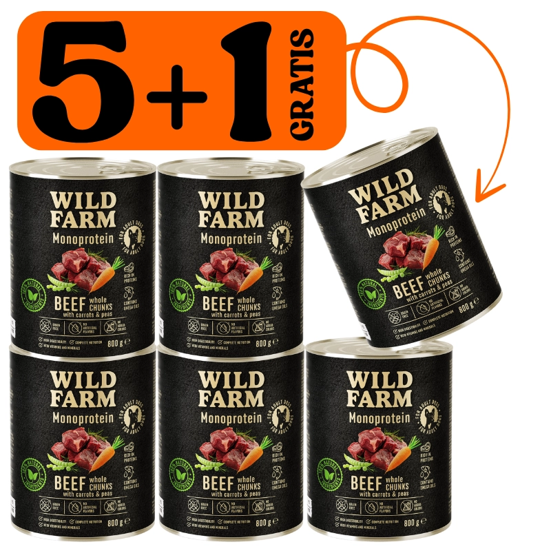 Wild Farm Monoprotein Wołowina z Marchewką i Groszkiem 800g
