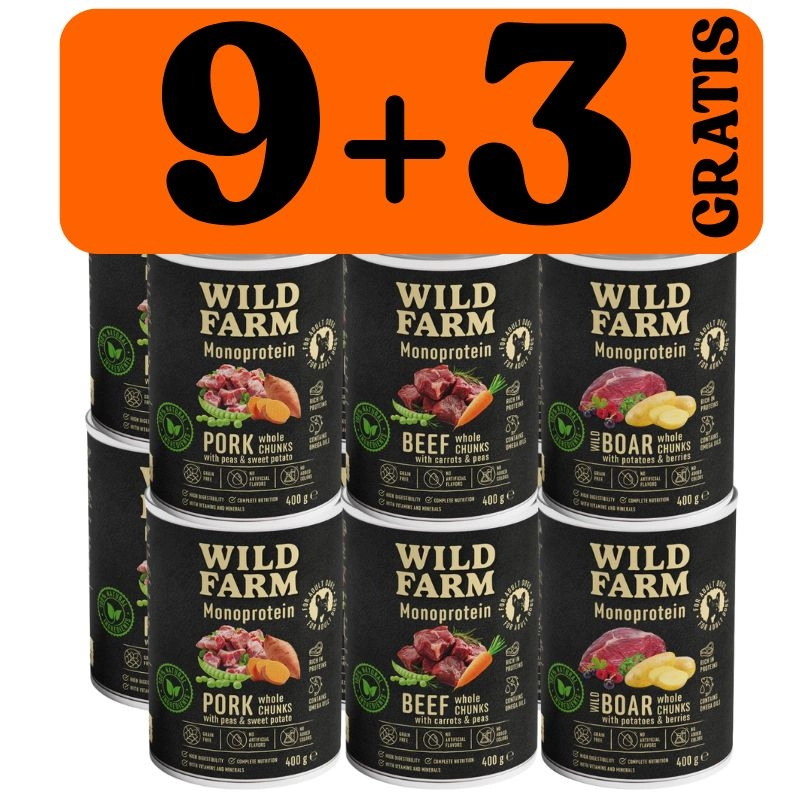 - 3x WILD FARM Monoprotein Pork 400g hipoalergiczna karma dla psaCena: 9,50 zł / szt.