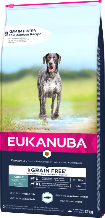 EUKANUBA Grain Free to bezglutenowa karma dla dorosłych psów dużych ras.