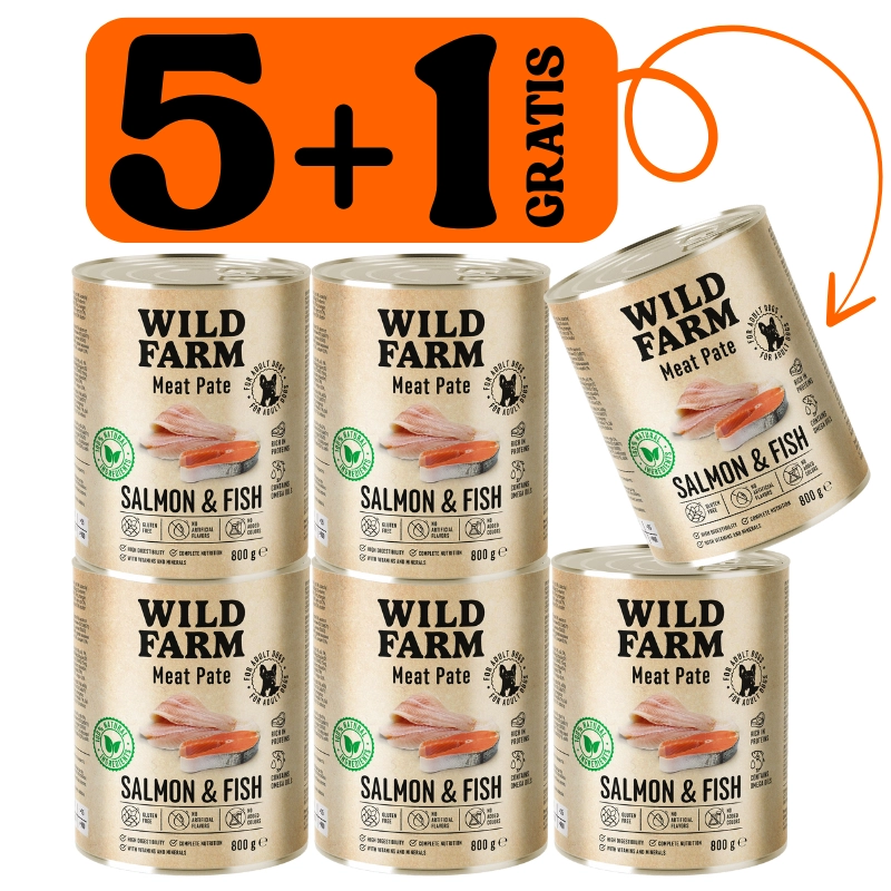 - 5x WILD FARM Pate Salmon & Fish 800g bezglutenowa karma dla psaCena: 7,90 zł / szt.