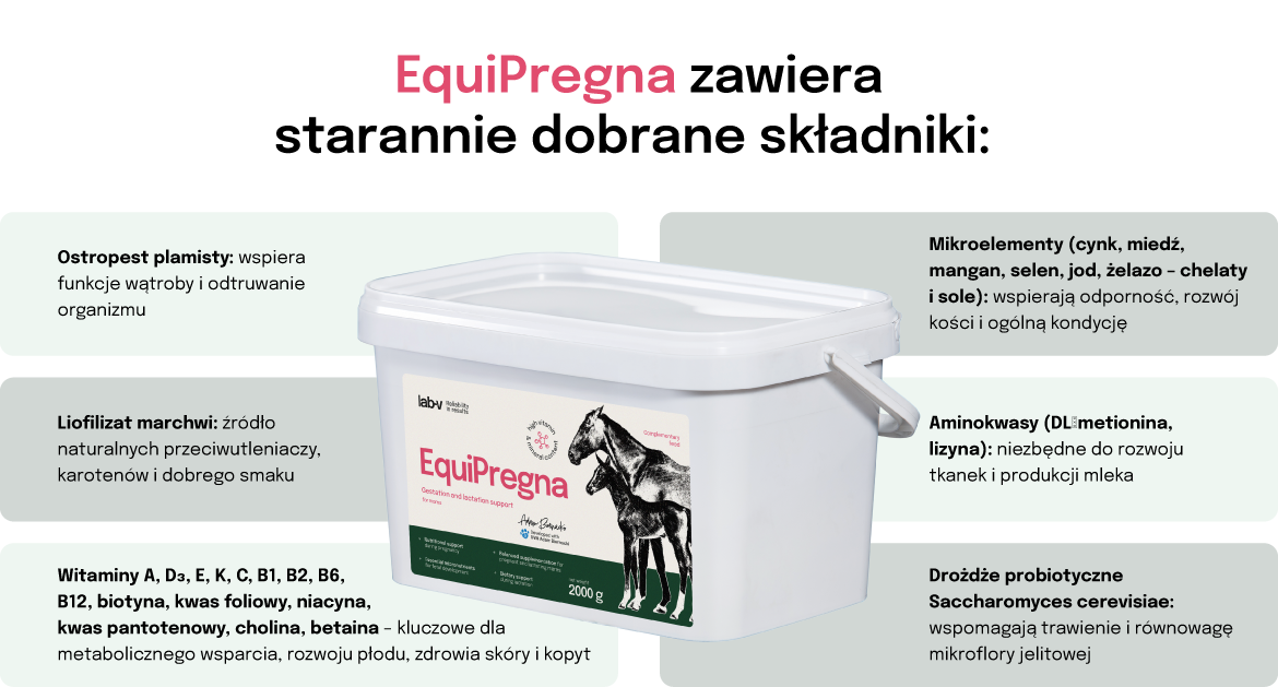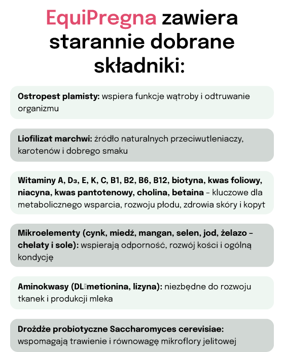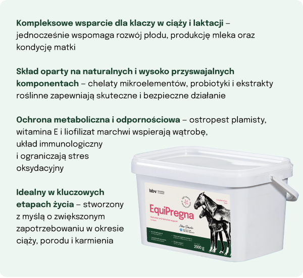 Dawka: 30–40 g dziennie dla klaczy ciężarnych i karmiących.