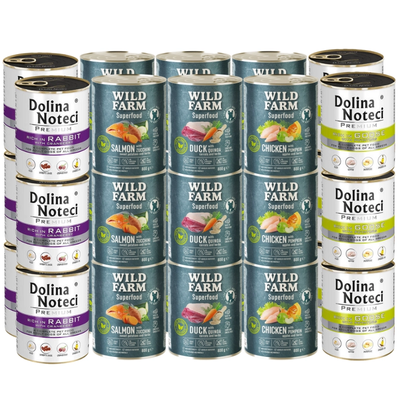 - 6x WILD FARM Superfood Duck (Kaczka z komosą ryżową, marchewką i ziołami) 800g bezzbożowa karma dla psaCena: 9,50 zł / szt.