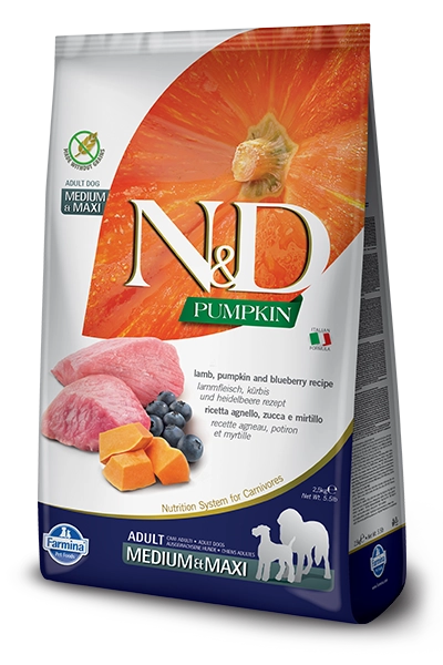 Świeże mięso z jagnięcia (22%), suszone mięso z jagnięcia (20%), skrobia grochowa, tłuszcz zwierzęcy, suszona dynia (5%), suszone całe jaja, świeże mięso ze śledzia, suszone mięso ze śledzia, olej rybny (ze śledzia), włókno grochu, suszona marchew, suszona lucerna, inulina, fruktooligosacharydy, ekstrakt z drożdży (źródło mannanoligosacharydów), suszone borówki (0.5%), suszone jabłko, suszony owoc granatu, suszona słodka pomarańcza, suszony szpinak, babka płesznik (0.3%), chlorek sodu, suszone drożdże piwne, korzeń kurkumy (0.2%), glukozamina, siarczan chondroityny.
