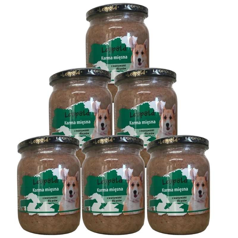 - 6x Leopold Karma mięsna z warzywami dla psów 500g (Słoik)Cena: 7,99 zł / szt.