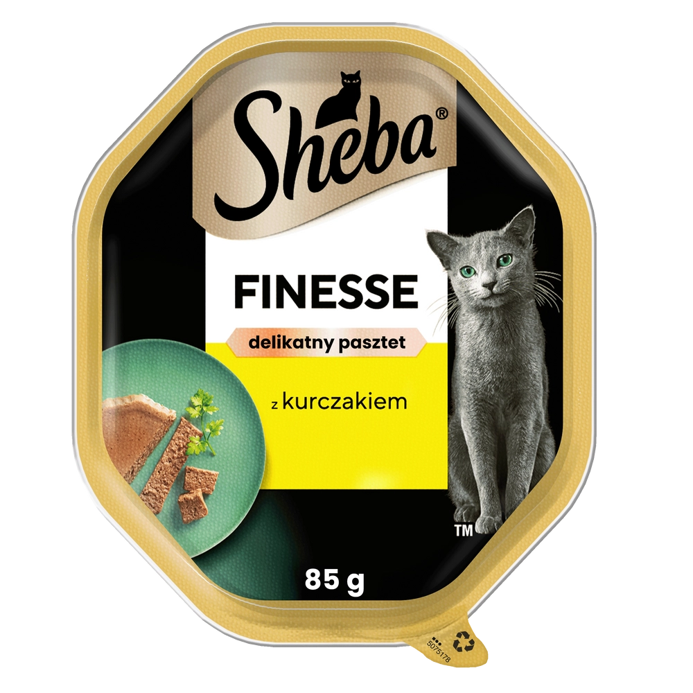 Pełnoporcjowa karma Sheba® Finesse to prawdziwa rozkosz w formie delikatnego pasztetu dla Twojego kociego przyjaciela. Propozycja posiłku z kurczakiem zachwyci podniebienia nawet najbardziej wymagających kotów. Sekretem mistrzowskiej receptury Sheba® Finesse są wyrafinowane składniki oraz witaminy i minerały. W każdej tacce znajdują się składniki odżywcze, wspierające prawidłowe funkcjonowanie Twojego kota. Pozwól swojemu kotu na kulinarną rozkosz, aby mógł delektować się pyszną karmą Sheba® Finesse, która zaspokoi nawet najbardziej wybredny apetyt.