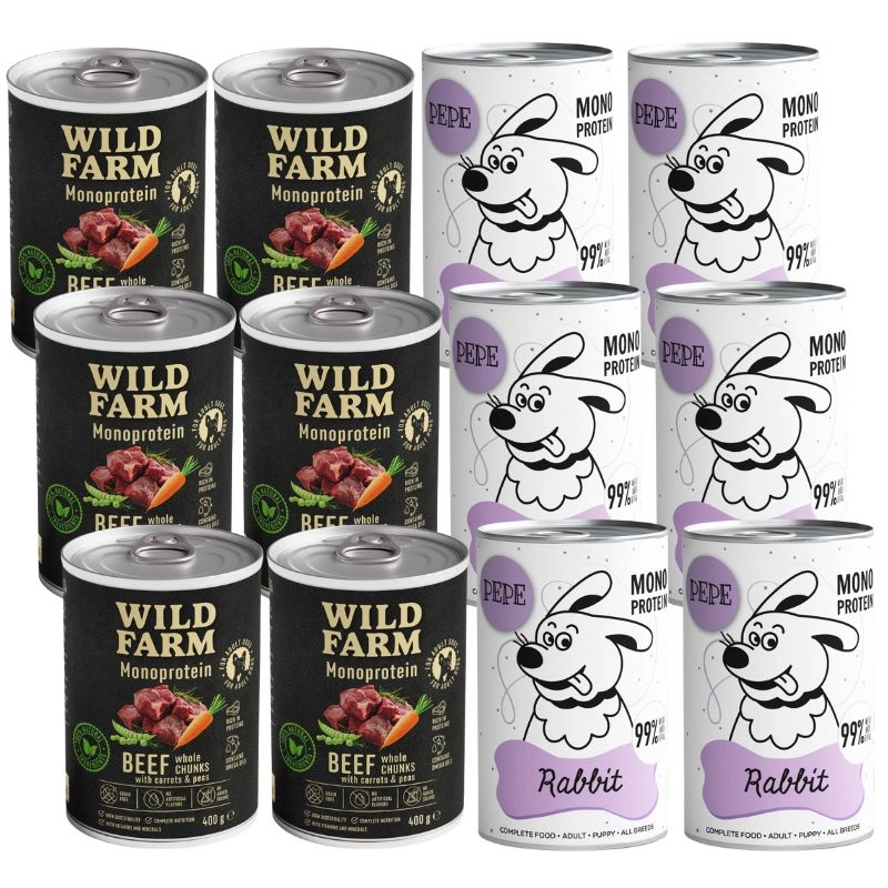- 6x WILD FARM Monoprotein Beef 400g hipoalergiczna karma dla psaCena: 9,50 zł / szt.
