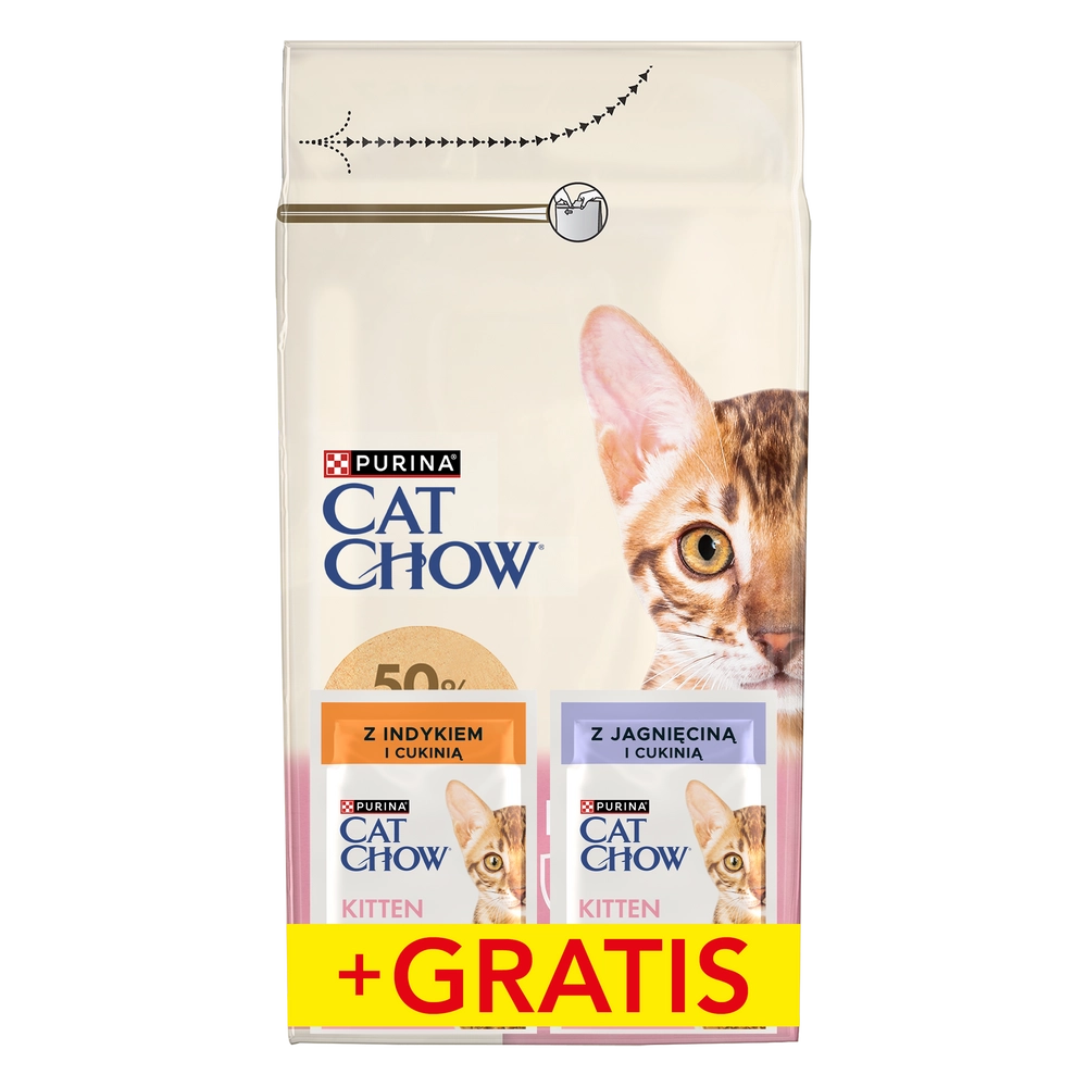 CAT CHOW Kitten Sucha karma dla kociąt Bogata w Kurczaka 1,5kg + 2 saszetki GRATIS