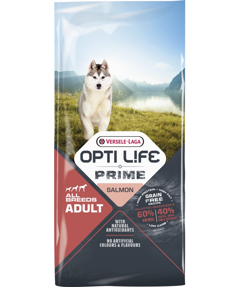 Z Opti Life Prime Adult Salmon, zapewniasz swojemu psu kompletny i smaczny, najwyższej jakości posiłek, pełen wartościowych składników odżywczych. Nasza bezzbożowa formuła jest bogata w białko i tłuszcze oraz niskowęglowodanowa. To idealna kompozycja, stworzona na bazie najwyższej jakości, smakowitych i naturalnych składników, zapewniających energię na dzień pełen przygód.