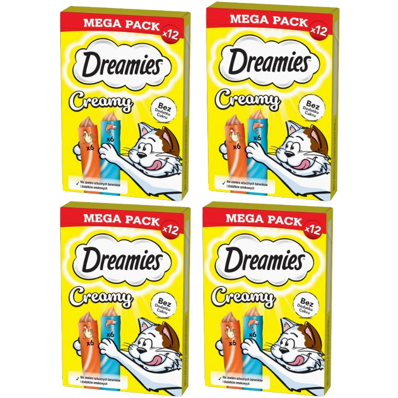 4x DREAMIES Creamy z kurczakiem i z łososiem 12x10gCena: 16,59 zł / szt.