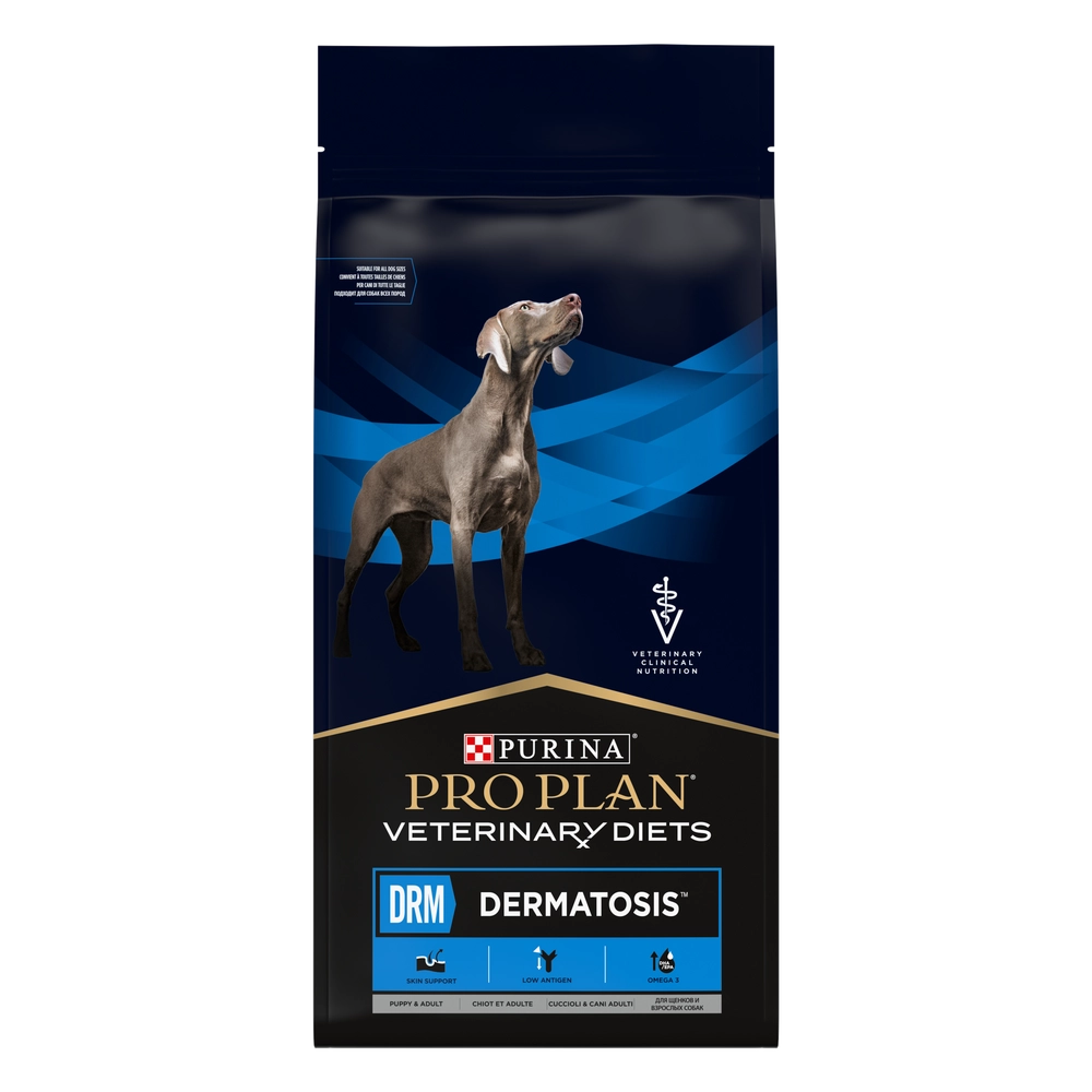 Pełnoporcjowa karma dietetyczna dla szczeniąt i psów dorosłych, do wspomagania funkcji skóry w przypadku jaj chorób i przy nadmiernym wypadaniu sierści z wysokim poziomem kwasu linolowego (LA) i sumy kwasu eikozapentaenowego (EPA) i kwasu dokozaheksaenowego (DHA).