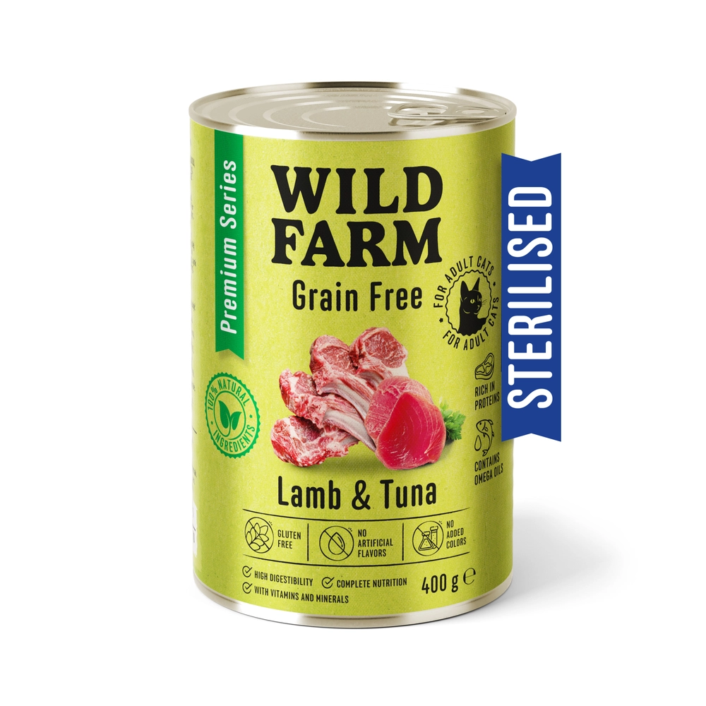 Wild Farm Grain Free Lamb & Tuna 400g – bezzbożowa karma premium dla dorosłych kotów sterylizowanych