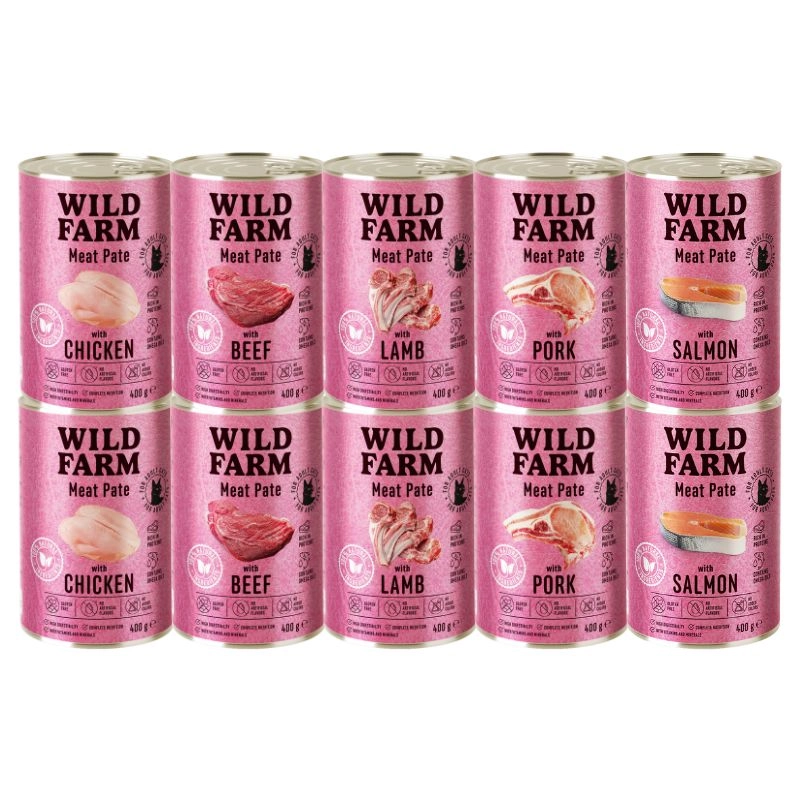 2x WILD FARM Pate with Beef 400g - bezglutenowa karma dla kotaCena: 4,90 zł / szt.
