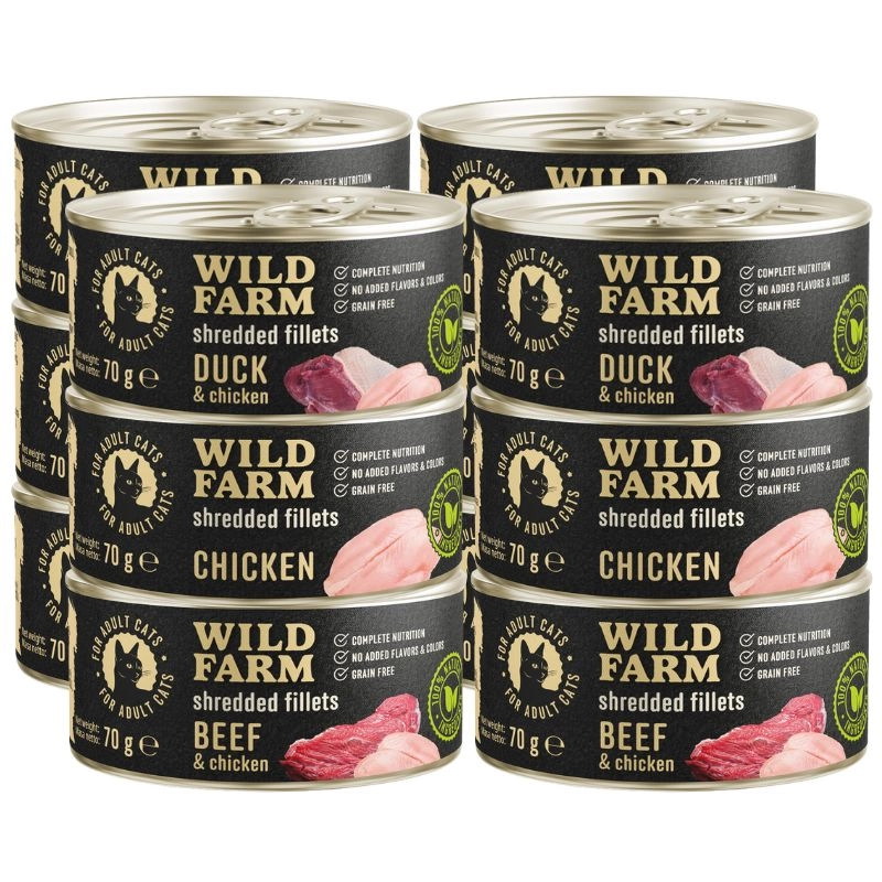 🐂🐔 Wild Farm Shredded Fillets Beef & Chicken 70g – filet z wołowiną i kurczakiem dla kotów