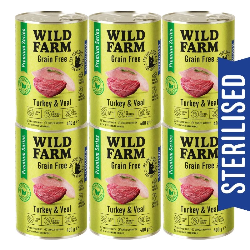 Wild Farm Grain Free Turkey & Veal 400g – bezzbożowa karma premium dla dorosłych kotów sterylizowanych