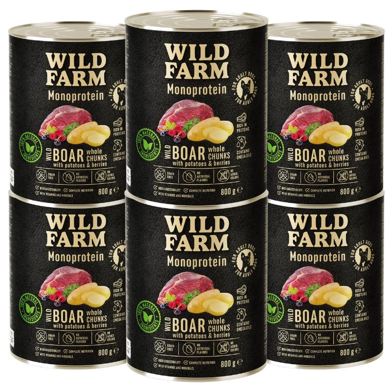 6x WILD FARM Monoprotein Wild Boar 800g hipoalergiczna karma dla psaCena: 14,50 zł / szt.Produkt niedostępny.